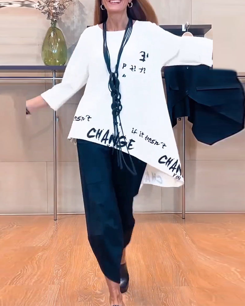 Avslappnad topp med bokstavstryck