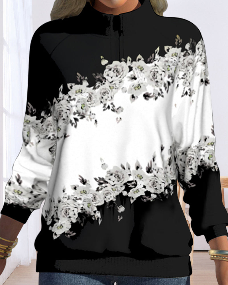 Blommönstertryckt topp med hög hals