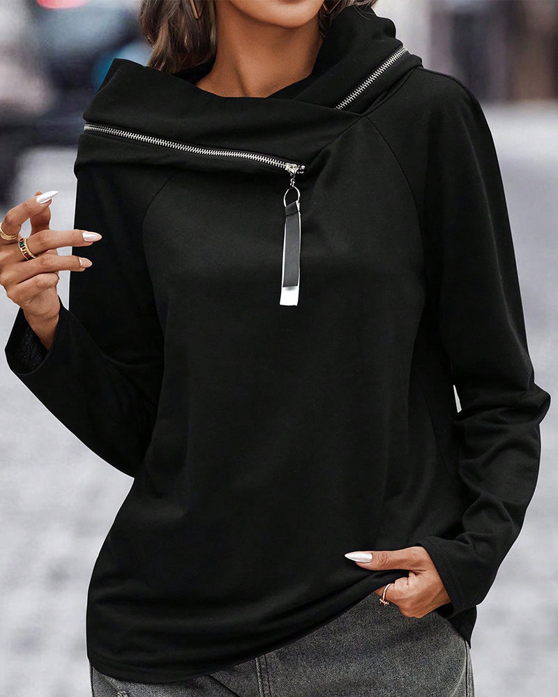 Enfärgad luvtröja med dragkedja