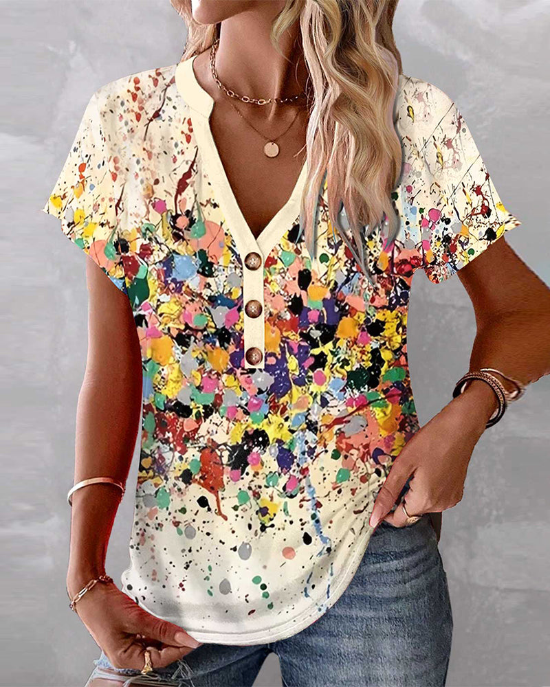 Färgglad V-ringad topp med graffititryck