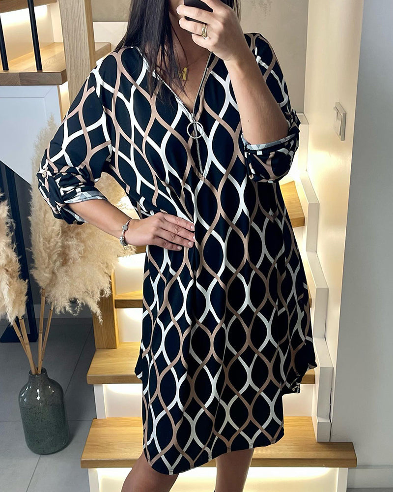 Klänning med dragkedja och rombtryck