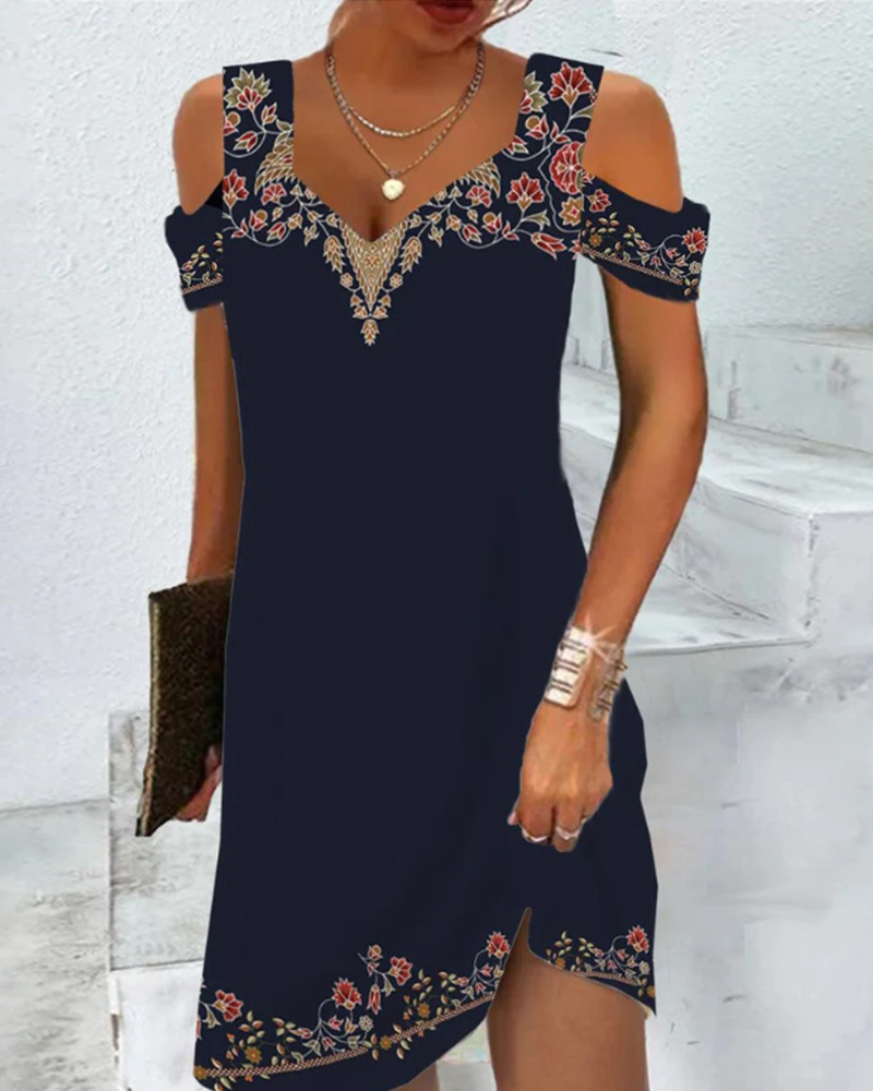 Midiklänning med tryck och kalla axlar