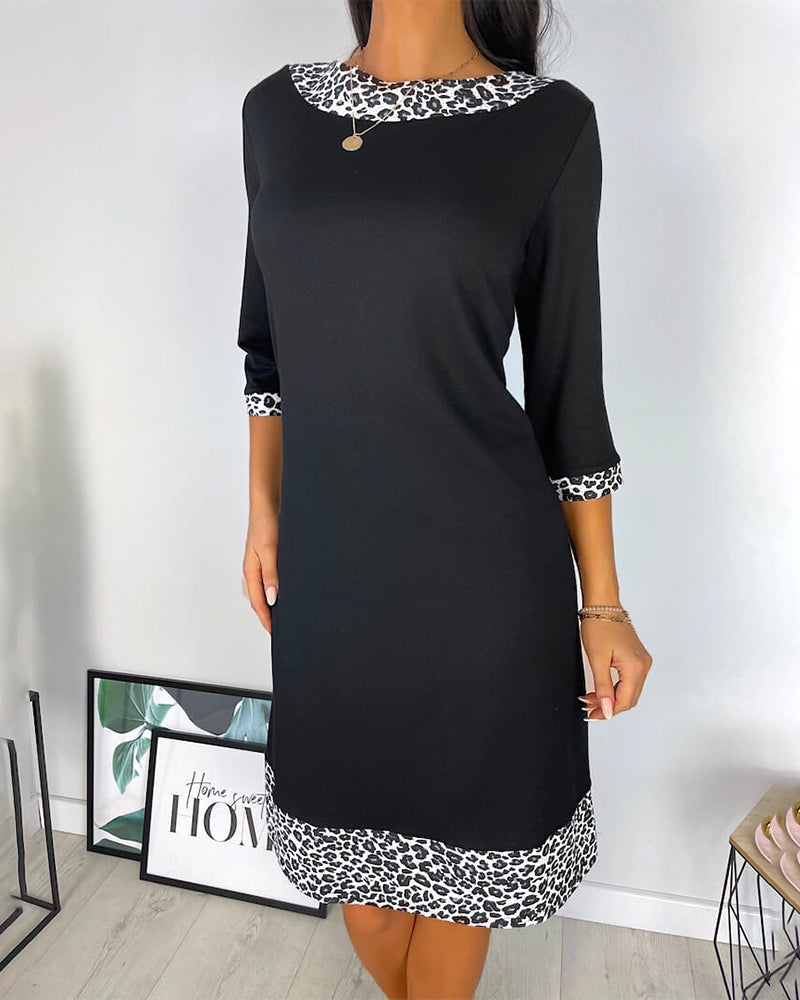 Patchwork Skiftklänning med leopard tryck