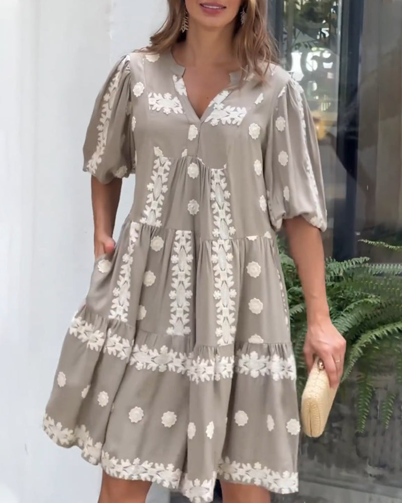 Puffärmsklänning med v-ringning