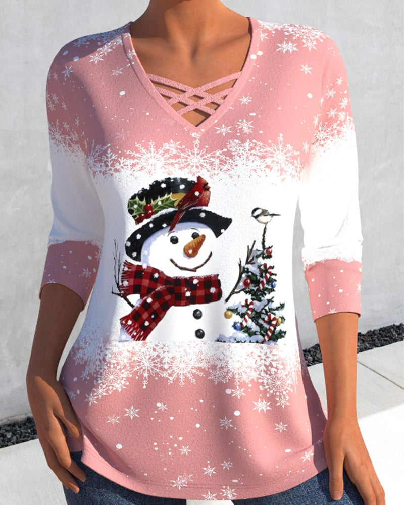 Snögubbetopp med långa ärmar och V-ringning