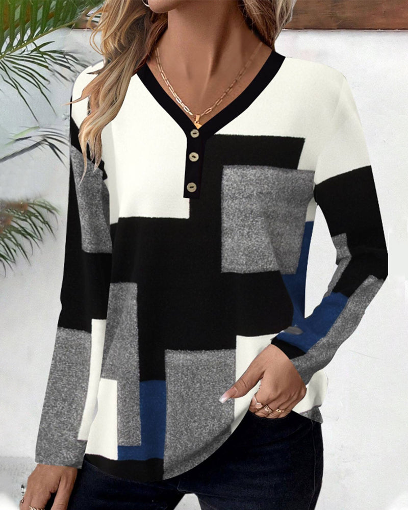 Topp med blockmönster och färgblockering