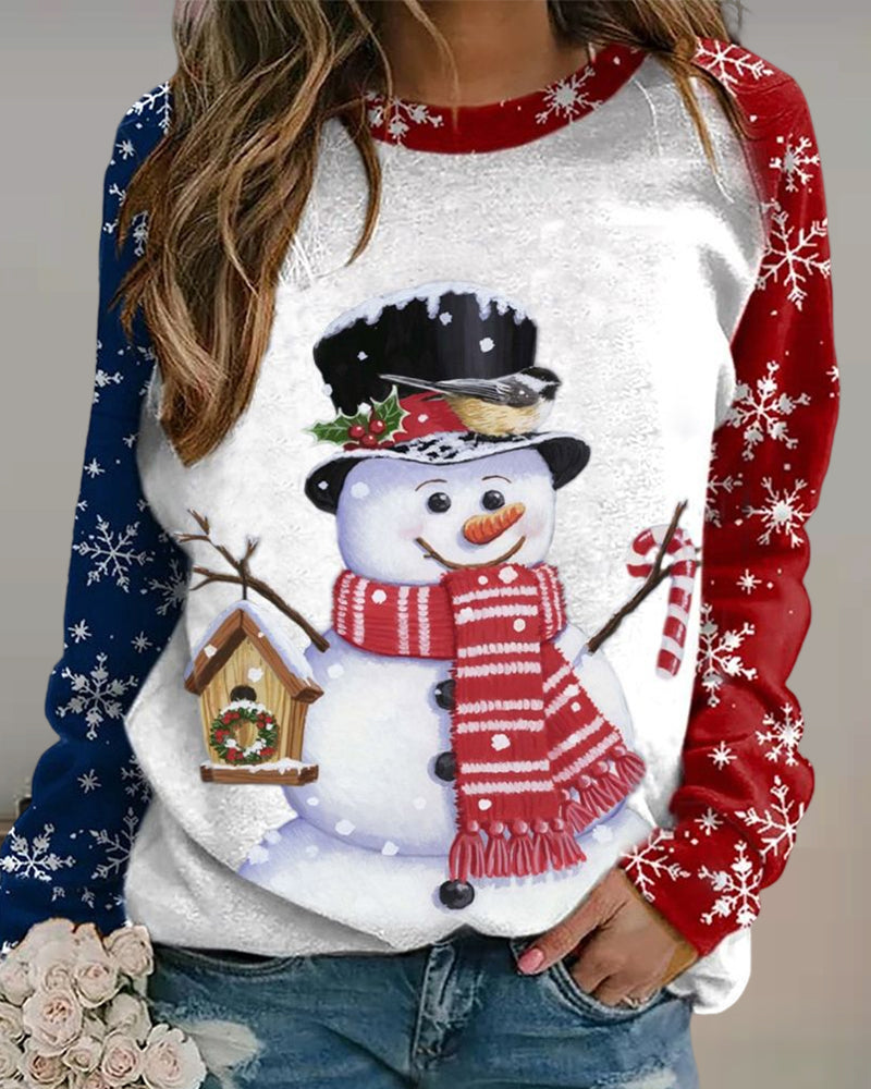 Topp med snögubbetryckt med rund hals