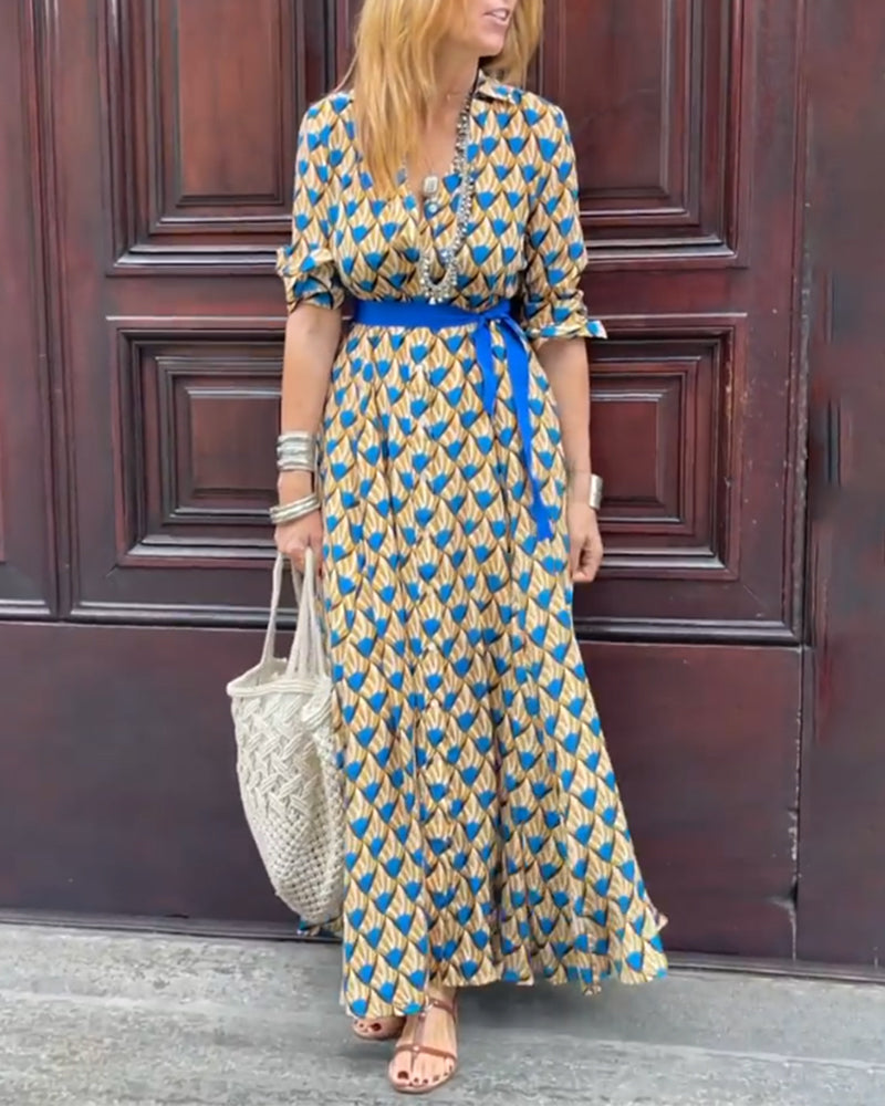 Tryckt klänning med långa ärmar