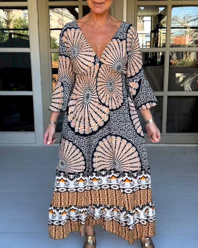 Tryckt utslagsärm Maxiklänning