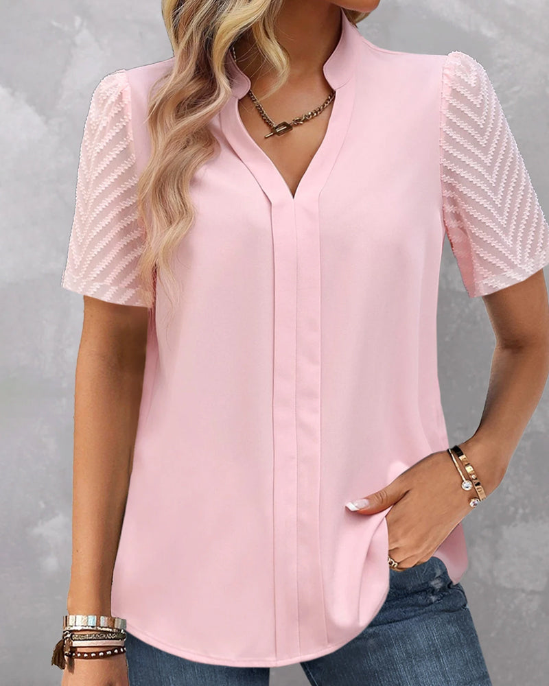 V-ringad enfärgad kortärmad blus