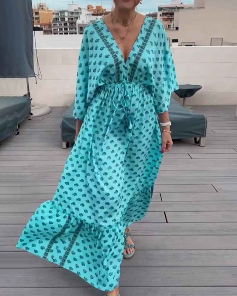 V-ringad klänning med modetryck