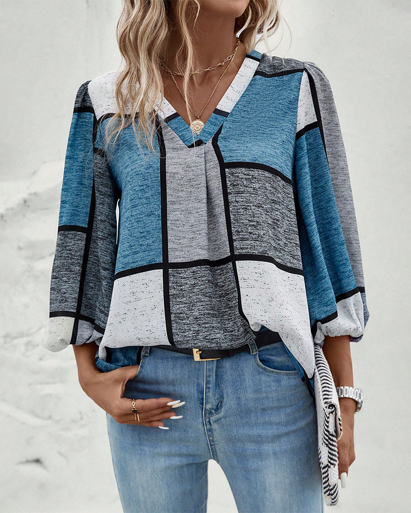 V-ringad topp med rutigt tryck